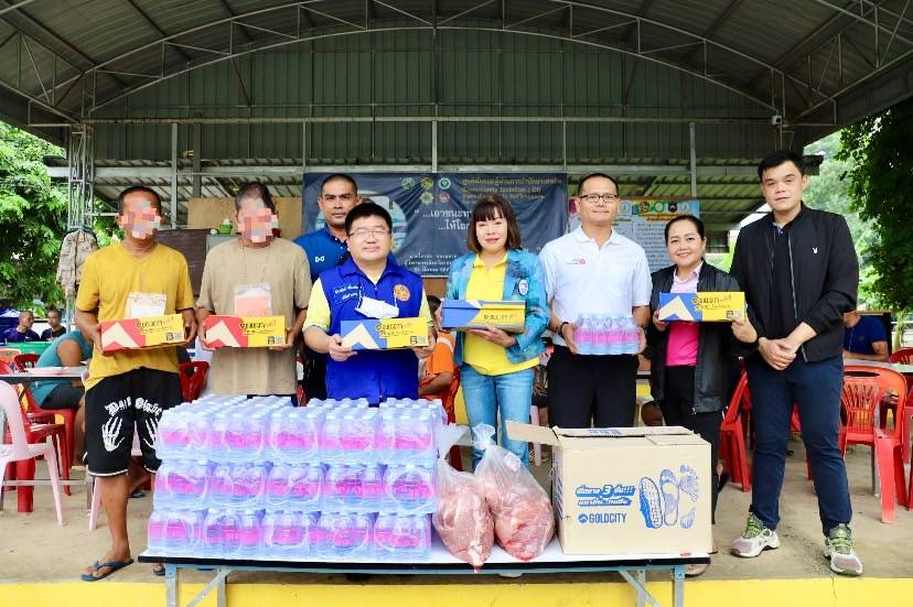 ร่วมบริจาคสิ่งของสนับสนุน ประกอบด้วยวัตถุดิบสำหรับปรุงอาหาร ได้แก่ หมูสด จำนวน 20 กก. น้ำดื่ม 30 โหล และรองเท้ากีฬา 14 คู่ ให้กับผู้เข้ารับการบำบัดรักษายาเสพติดภายในศูนย์บำบัดและปรับพฤติกรรมผู้ที่เลิกยาเสพติด และรอส่งกลับบ้าน Community Isolation หรือ CI เพื่อสนับสนุนการดำเนินงานด้านการป้องกันและปราบปรามยาเสพติดตามที่รัฐบาลและจังหวัดกำหนด