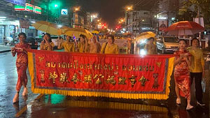 ศ 1 พ.ย.2562( Nov. 1 st ,2019 )ขบวนแห่รอบค่ำฉลองงานสมโภชน์ศาลเจ้าปึงเถ่ากงม่า อ.เมือง จ.ขอนแก่น ประจำปี 2562.เริ่มแล้ว แห่เริ่มจากศาลเจ้าพ่อหลักเมืองขอนแก่นมายังศาลเจ้าปึงเถ่ากงม่า ริมบึงแก่นนคร . แม้ฝนจะทั้งโปรยปรายถึงตกถล่มลงมา ก็มิอาจหยุดยั้งศรัทธา คณะกรรมการแต่ละปี สมาชิกสมาคม คณะชมรมต่างๆ ชาวขอนแก่น และผู้มาเยี่ยมเยือน เรียนเชิญ ชาวขอนแก่นและผู้มาเยี่ยมเยือน หรือ ผ่านเมืองขอนแก่น แวะเที่ยวชม ชิม ช็อบ ใช้ ในงานรวมถึงไหว้เจ้า เทพเซียนต่างๆ ขอพรเพื่อความเป็นศิริมงคลมีทั้งแรงกายแรงใจที่ดีขึ้น . ร่วมด้วยช่วยกันรักษาสืบสานประเพณีอันดีงาม เทศกาลรื่นเริงเฉลิมฉลอง และมีประโยชน์ได้บุญ ทำบุญเพื่อเป็นสาธารณกุศลในด้านกิจกรรมชมรมและ สถานที่ต่างๆที่ขาดแคลนเดือดร้อน ต้องการความช่วยเหลือ ด้วยการร่วมทำบุญ ประมูล เที่ยวงาน เลือกซื้อ จับจ่าย มาเที่ยวจับจ่ายใช้สอย อุดหนุนเจ้า พ่อค้าแม่ขายให้มีการรวมพลังศรัทธาเป็นน้ำหนึ่งใจเดียวกัน สาธุ